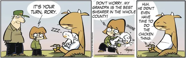 Rory’s been dreading his shearing, but it plants any number of Australian ear worms I’ll carry around the rest of the day.