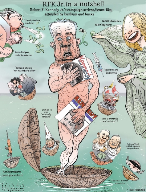 Steve Brodner’s two pieces can be viewed here and here, John Cuneo’s two pieces are here and here.