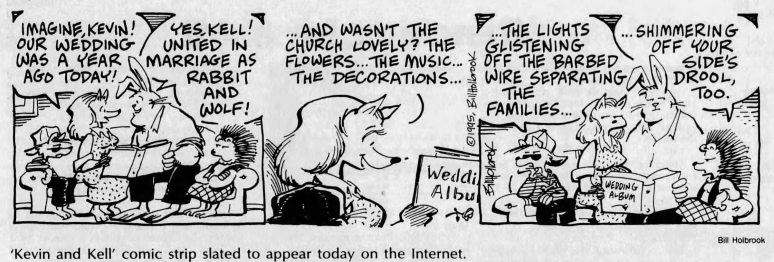 Kevin and Kell debuted on Sunday September 3, 1995 as one of the first regularly published online comic strips, but the first Kevin and Kell daily actually made it into a newspaper,