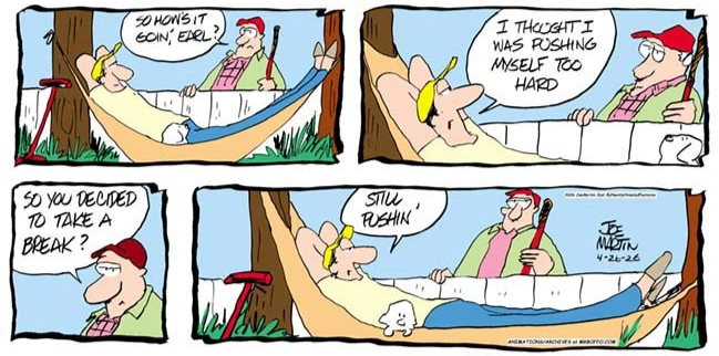 We’re a few weeks short of warm weather here, but Mr. Boffo recommends taking it easy, and if you have the forethought to plant a pair of trees close enough, a hammock is a fine place to chill in summer. I think most people have those frames instead, but for a look at the overall topic of relaxation, try this ridiculous story about a young woman who gave up a six-figure job to live on cruise ships full-time.