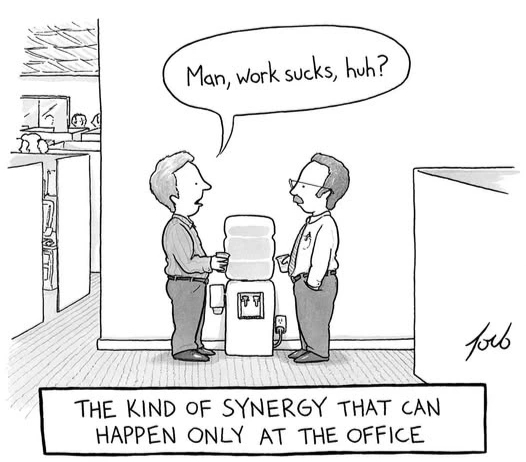And, besides, work-at-home or work-on-board (which she was attempting) robs you of the camaraderie of being in the office. Maybe they should have steel-drum bands in the office to make it seem more festive.