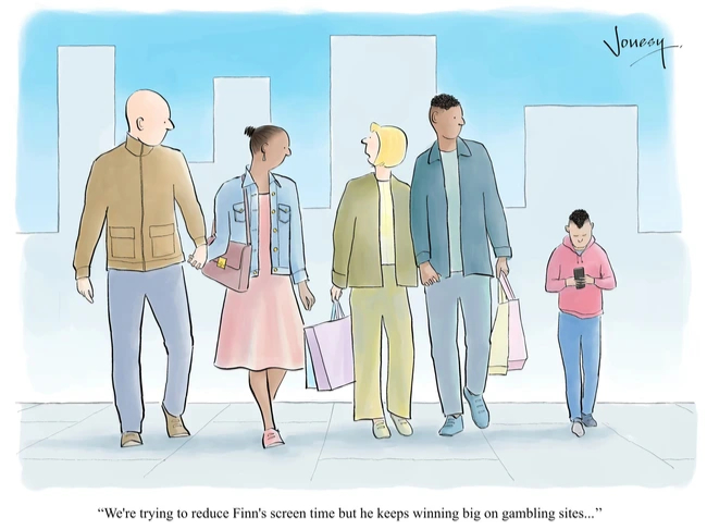 Jonesy got into the Guardian this past week, and there they call him “Steve Jones,” which is kind of like those teachers who use your full name when most of your friends didn’t even know it. But this one does hit a vulnerable spot in the UK, where they’re debating joining Australia in putting limits on kids’ screen time, and I think worldwide in terms of the gambling that has broken out online.