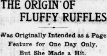 The Fluffy Ruffles Story The job-hunting, resourceful, and decidedly independent heroine became a national sensation shortly after her Feb. 3 premiere in the New York Herald. Fluffy was a pioneering woman in the workplace battling a reversal in fortune by making weekly tries as a journalist, florist, schoolteacher, dairy maid, waitress and more. The full […]